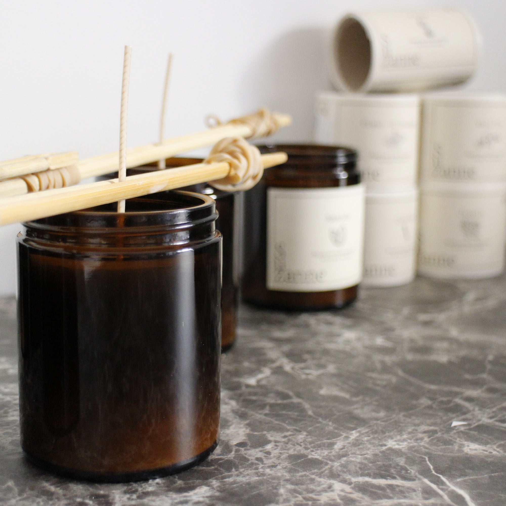 Loin d'un format industriel, chaque bougie est confectionnée à la main dans notre atelier. Huiles parfumées, mèches et cires sont sélectionnées en fonction de critères bien précis: une cire de soja certifiée Ecocert sans OGM et sans pesticide, une cire d'abeille naturelle issue d'alvéoles recyclées, des mèches garanties sans plomb, et des huiles parfumées sans substance et phtalate considérés comme CMR (Cancérigènes, Mutagènes, Toxiques pour la reproduction). Les pots sont issus d'une verrerie française. Il était important pour nous de ne proposer que des bougies plus saines, plus éthiques et de remettre au goût du jour l'artisanat cirier français.